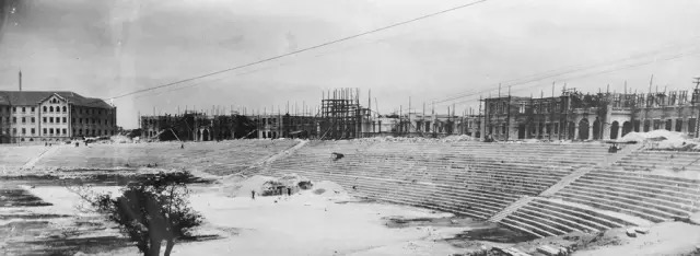 上弦场,厦门大学的主体育场,是一座322000平方米半椭圆形的宏伟大运动场,巧妙利用地形差异砌筑25级别台阶,构建了可容纳20000人的看台。因其独特的弧形轮廓,宛如夜空中的上弦月,故得名。在甲午时期,这里曾是水师们砺剑的练兵场,将士们激昂的动员演说与必胜口号仍仿佛在空中回荡。