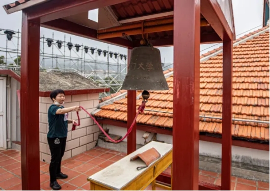 厦门大学敲钟的传统已逾百年,而最早的那口大钟是校主陈嘉庚在1919年的冬天,在他的老家集美打造而成的,即使在抗战时期内迁长汀,钟声也没有停,它见证了厦大迁往长汀的抗战史。当时的学生、现已故的厦大教授潘懋元说:“当年在长汀,很多人根据厦大北极阁的钟声判断时间。”一百年来,从长汀到如今的建南,即使岁月更迭,钟声却从未停滞,厦大也是全国唯一仍然保留着以钟声作为师生作息提示的高校。