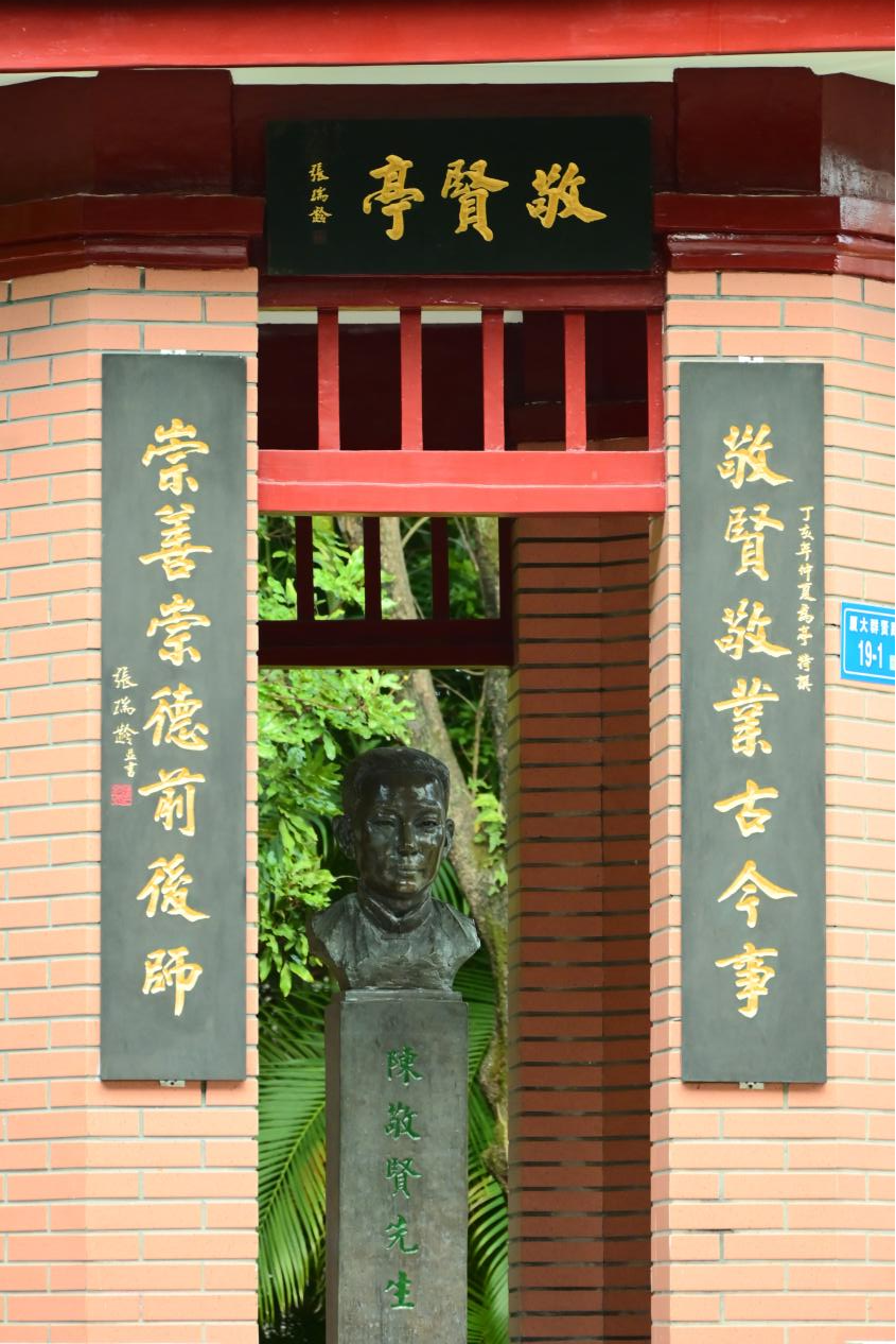 敬贤亭位于思明校区集美楼后,亭上有著名书法家张瑞龄书写的“敬贤亭”及对联“敬贤敬业古今事,崇善崇德前后师。”亭子以敬贤为名,既是对陈嘉庚先生的胞弟陈敬贤先生的纪念,也表达了对厦门大学建校、发展的先贤前辈的崇敬之情。