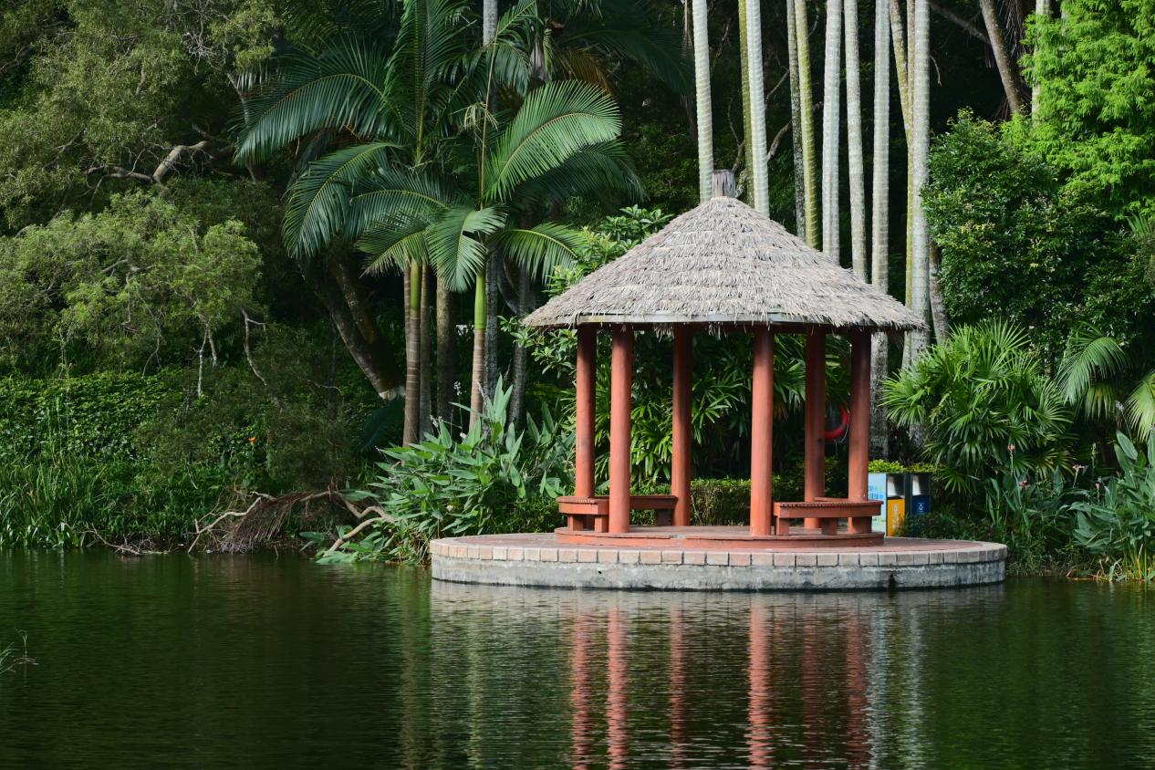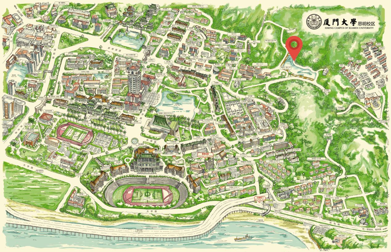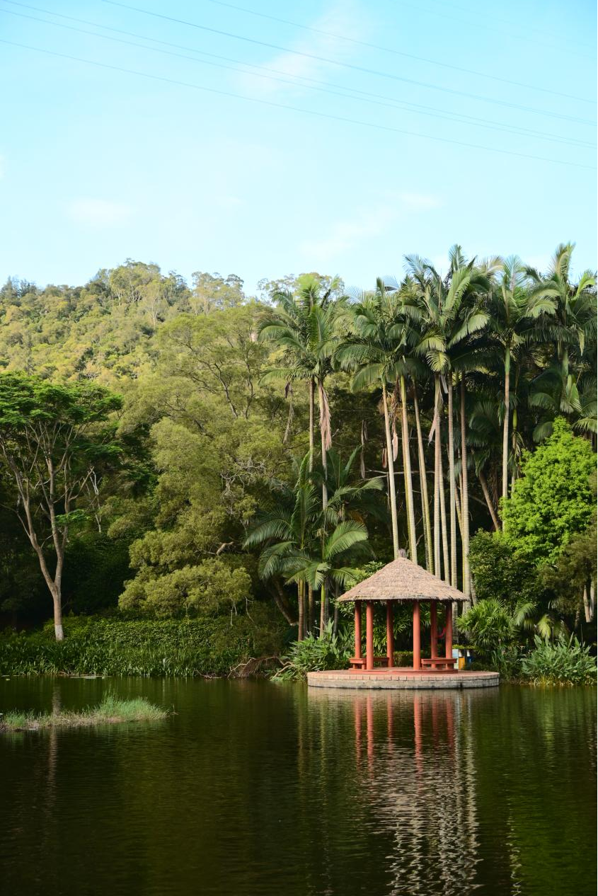 在厦大久负盛名的情人谷(思源谷)中,也有一座有趣的小亭子,它位于湖中小岛之上。有趣的是与厦园别处的亭子都不同,情人谷的这座亭子是一座圆形木亭,亭盖由茅草铺成,洋溢着浓浓的东南亚热带风情,在情侣相约、诗意栖居的情人谷,这座小圆亭见证着厦大学子的青春气息