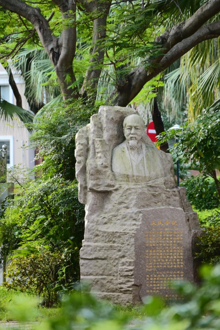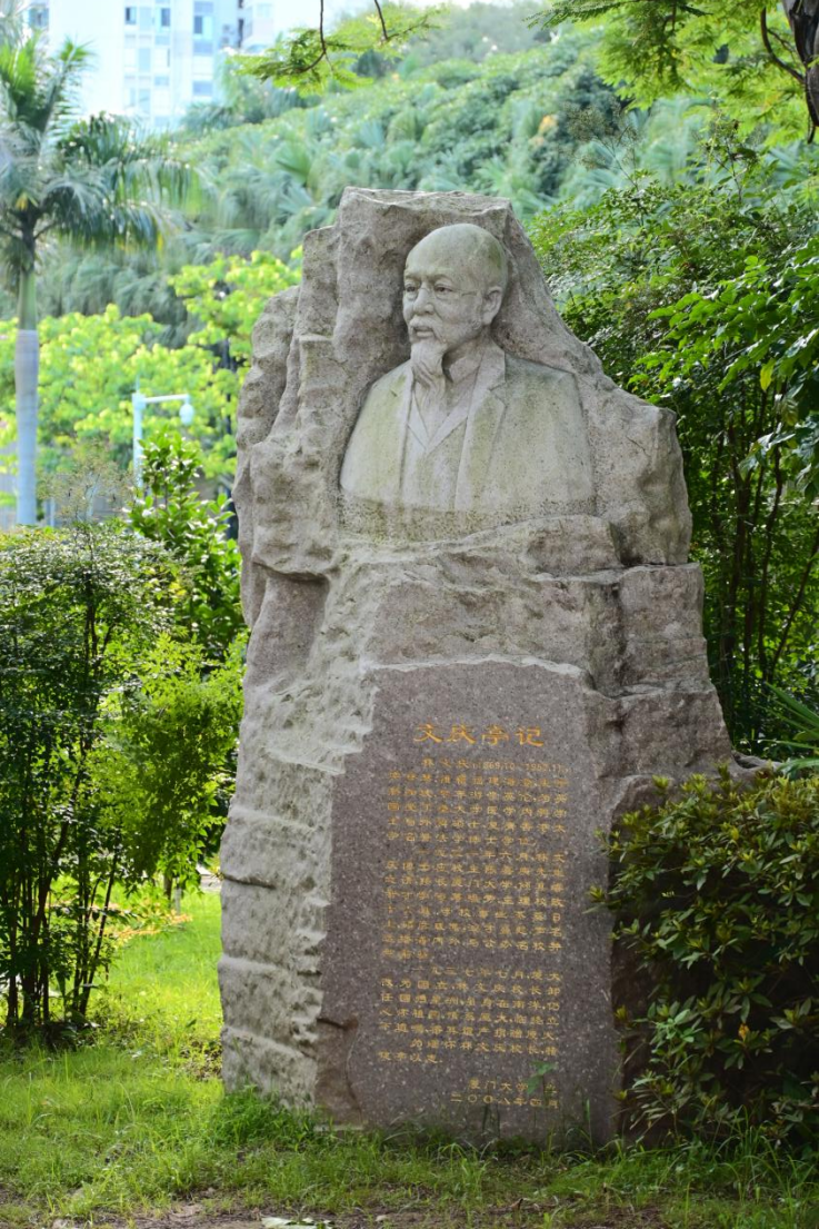 2008年校庆期间,林文庆汉白玉雕像在亭子旁边落成,每每亭边路过,都会被先生凝眸远眺之资所吸引。抬头看向亭上的横批,我每次都会将“唯文有庆”念成“唯有文庆”。作为私立厦门大学时期任期最长的校长,林文庆先生为了实现陈嘉庚发展祖国教育事业的崇高理念而放弃了优渥的社会地位,殚精竭虑十六年,在厦门大学期间培育专门人才,推动科学教育与国学研究,对华人教育现代化和儒学文化传承作出了卓越贡献,将厦大从岛上的荒凉一角建成一座规模宏大的学府。