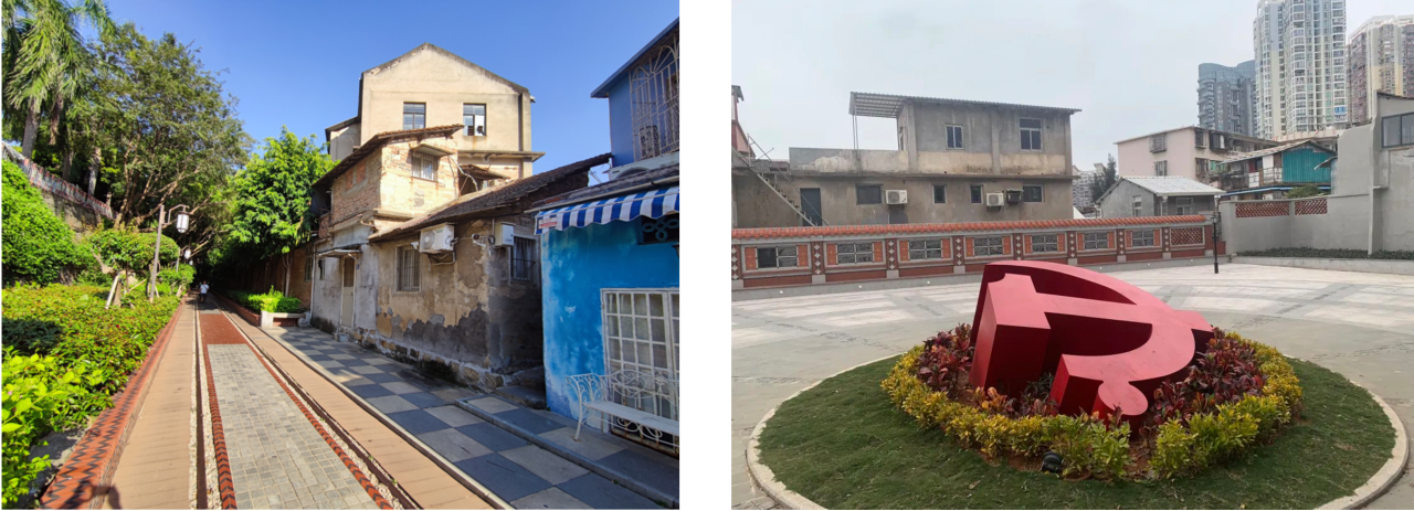 为传承红色文化,旧址周边进行改造提升:拆除部分与旧址风貌不符的建筑后,在场地内融入了小城春秋的历史记忆、革命长廊的悲壮足迹以及象征信仰的党徽等元素,旨在通过这些设计,让每一位到访者都能深刻感受到那段烽火连天的岁月;同时对周边建筑外立面进行整治,使之与破狱斗争旧址的风貌相协调统一。