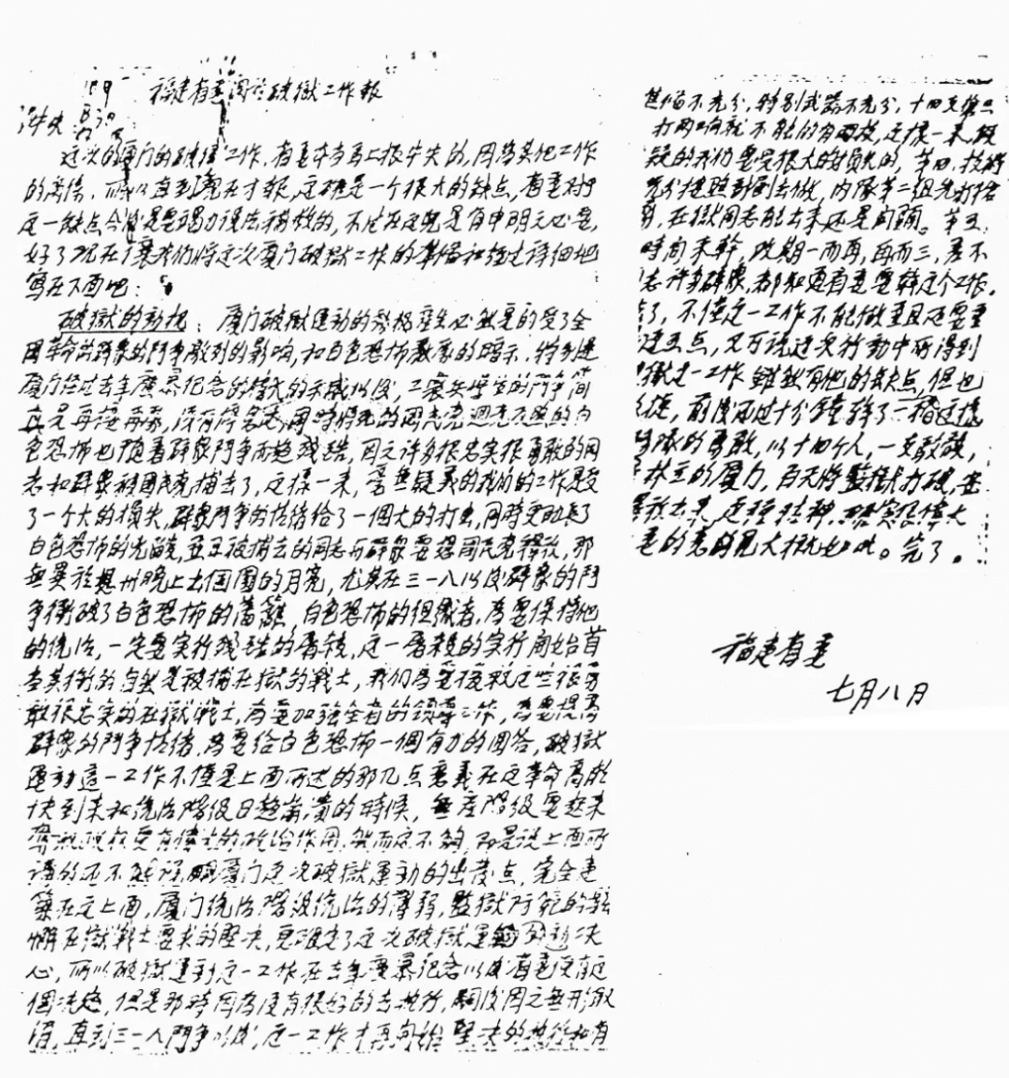 关于厦门破狱斗争给中央的报告
