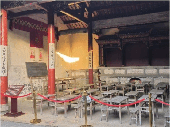 古田会议会址建于1848年,是一座单层歇山四合院式的宗祠建筑。古田会议召开于1929年12月,标志着思想建党、政治建军原则的确立,解决了如何建设新型人民军队的问题。
