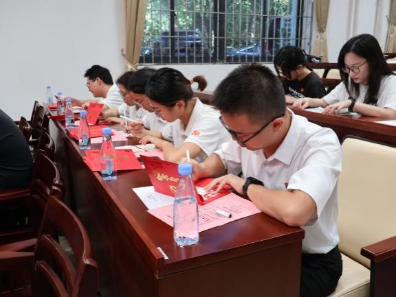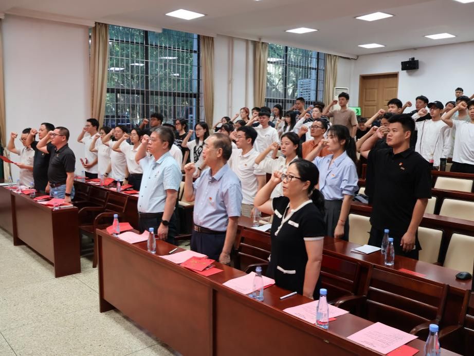 “我志愿加入中国共产党,拥护党的纲领……随时准备为党和人民牺牲一切,永不叛党。”在张建霖的领誓下,全体党员师生面向党旗,举起右手庄严宣誓。铿锵有力的誓言回荡在会场,字字句句凝结着对党的忠诚承诺,也让在场青年党员在重温初心的仪式中,感受到跨越四十年的信仰传承。