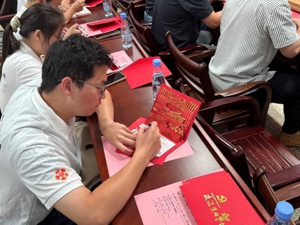 活动中,嘉宾与宣讲团成员手持定制初心印章卡片,亲笔书写入党初衷,从 “科研报国” 的铿锵誓言到 “为民服务” 的朴素情怀,字迹间流淌着对信仰的赤诚。随后,众人通过扫描屏幕上的二维码,将手写卡片拍照上传至活动平台,让纸质初心印记以数字化形式永久留存。