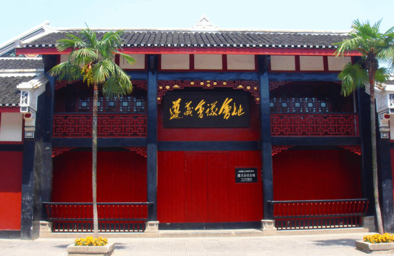 贵州遵义作为黔北重镇,扼守川黔交通要道,历来是兵家必争之地,而且会议旧址位于遵义花岗区老城核心区,既是遵义政治经济中心,又毗邻天然制高点凤凰山与水上交通线湘江河,为会议召开提供了天时地利的保护。会议旧址原为柏辉章公馆,这座建筑当时在遵义城内无人不晓,红军到达遵义城之后,柏辉章家人吓得逃跑了,红军总司令部便驻扎了进来。