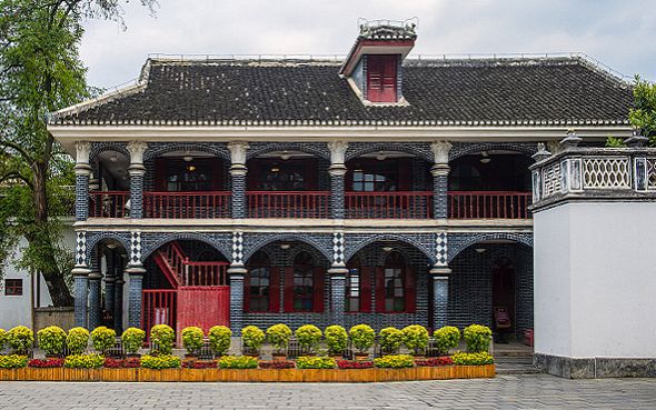 这座砖木建筑面积为862平方米,是20世纪30年代黔北地区权贵宅邸的典型代表,却在中西合璧的设计中暗藏时代变革的隐喻。主楼采用民国初期典型“走马转角楼”制式,东西对称布局符合传统礼制。建筑主体为穿斗式木构架承重,12根金柱直径达40厘米,黔北杉木经桐油浸渍,至今未现虫蛀。青砖墙体以“三顺一丁”砌筑,石灰糯米浆勾缝,厚度达60厘米的围护结构形成天然温度调节层。