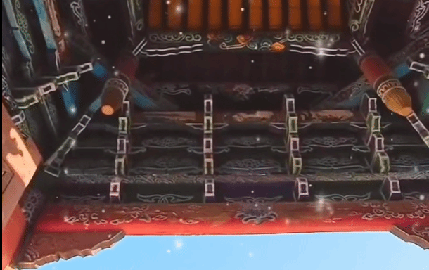 梁架彩绘以传统技法绘制于梁枋等构件上。色彩丰富,红、黑等色调搭配和谐,图案精美,有卷草、云纹等传统纹饰,展现出高超的古建筑装饰技艺,极具艺术价值。