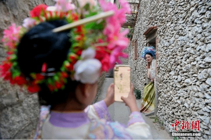 起初,是零星的快门声。某天,一位头戴“簪花围”的姑娘,以那片灰白嶙峋的蚵壳墙为背景,拍下了一张照片。她发梢的春色与墙体的沧海,在镜头里碰撞出奇异的火花。这张照片,像一枚投入静湖的石子。紧接着,是成百上千的模仿者。古老的蟳埔女习俗,遇见了社交媒体的算法,瞬间被点燃。