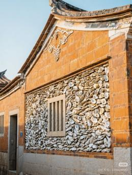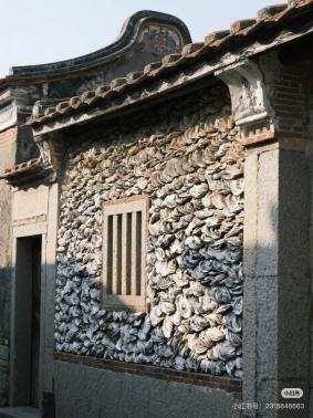 砌墙时,匠人将蚵壳凸面朝外,凹面向下,如鳞片般层层相叠,斜铺在墙上。混合着糯米、石灰的黏合剂,将它们牢牢锁在一起,形成厚达数十公分的灰白色墙体。这便是“千年砖,万年蚵”的由来——贝壳的天然弧度能巧妙卸掉台风的猛劲,致密的构造则隔绝了潮气。