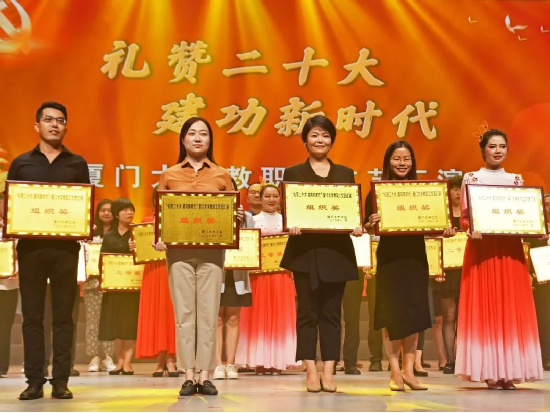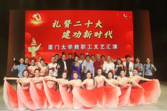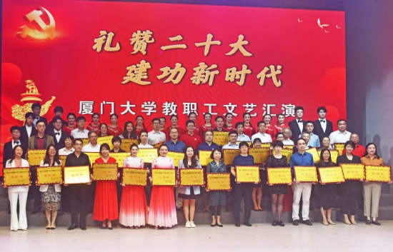 11月12日-13日,“礼赞二十大,建功新时代”厦门大学教职工文艺汇演在建南大会堂举行。全校共28支队伍参加比赛,竞显风采。经过精彩紧张的激烈比拼,我院选送的情景歌舞节目《理想耀南强》以总分第二的成绩荣获一等奖,学院荣获组织奖。