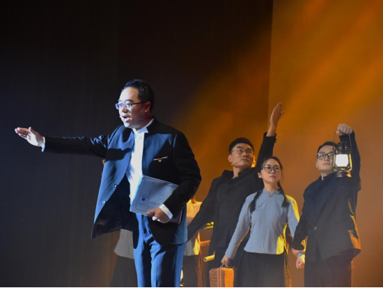 “爱国!革命!百年奋斗,校主擘画厦大蓝图!矢志报国,理想信仰依旧照耀前方!”一句句铿锵有力的朗诵词响彻建南大会堂,带领着现场观众一起回顾了厦门大学内迁闽西艰苦办学的不易和陈嘉庚先生坚持教育救国的信念,传承“爱国、革命、自强、科学”的优良校风。