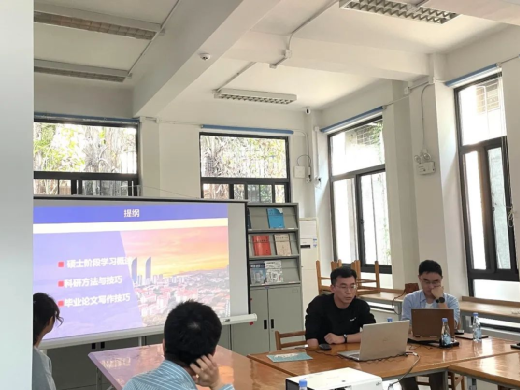 本次交流分享会由2023级建筑系研究生余河瑶主持,设有嘉宾致辞、嘉宾分享、提问互动三个环节。分享内容丰富多彩,例如如何有效地阅读英文文献、如何规划和撰写一篇高质量的英文论文、就业升学建议、如何与导师有效沟通的建议等,从学习科研到个人生涯规划,紧扣同学们关心的话题。