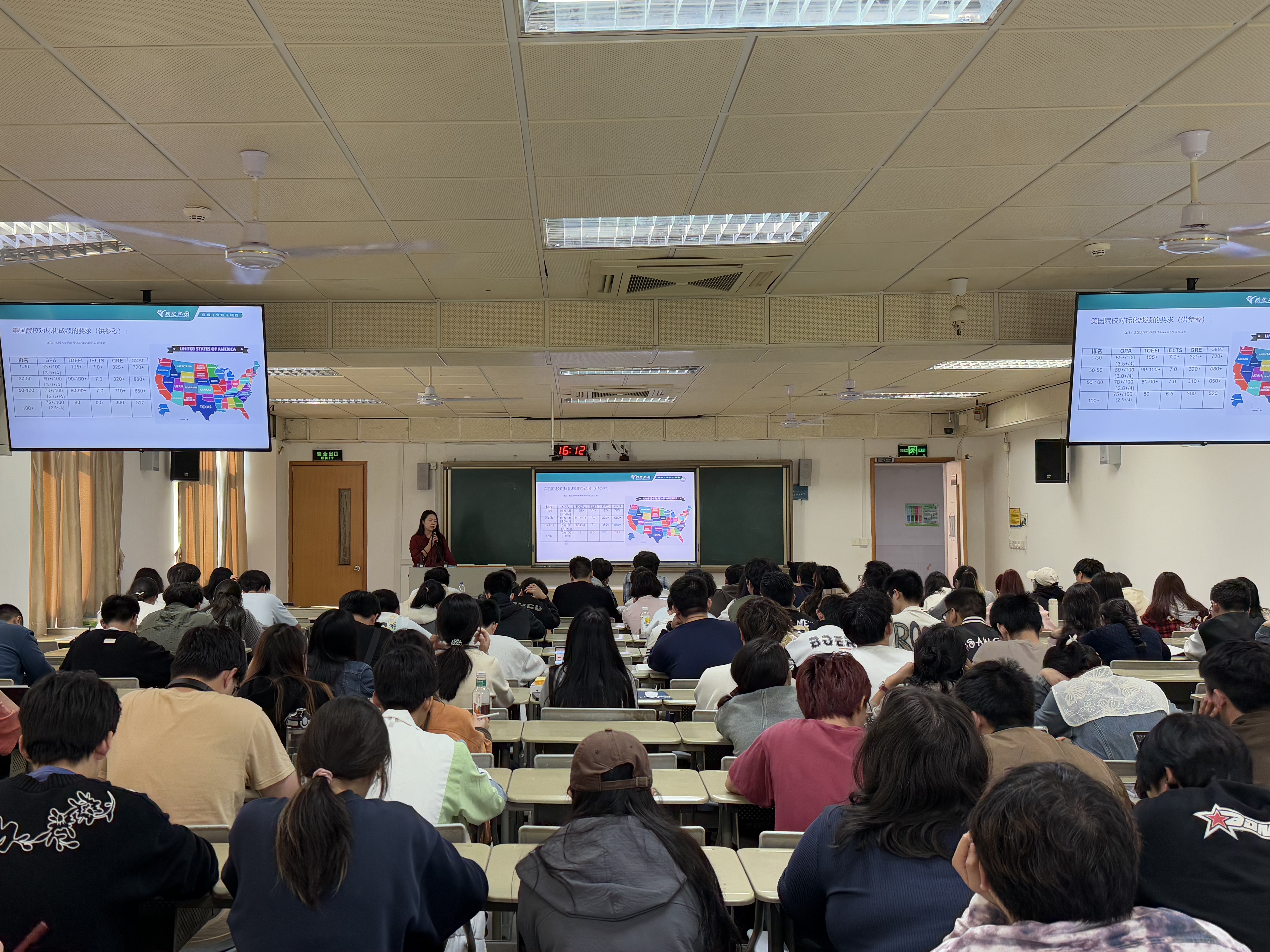 期间,韩帅借助权威数据,如 QS 排名、录取率等,结合政策解读,让学生们对不同院校的申请标准和要求有了更清晰认识。在申请核心环节,韩帅从硬性成绩到软性背景进行分析,指导学生提前规划实习、科研项目及作品集,提升申请成功率。此外,韩帅还深入解读了厦门市及大湾区人才引进政策,为留学生归国发展提供了明确方向。通过对比全球院校与就业市场,引导学生结合自身优势选择留学路径,同时,面对 “逆向考研” 的内卷困境,以打破信息差的方式,为学生提供新的发展思路。
