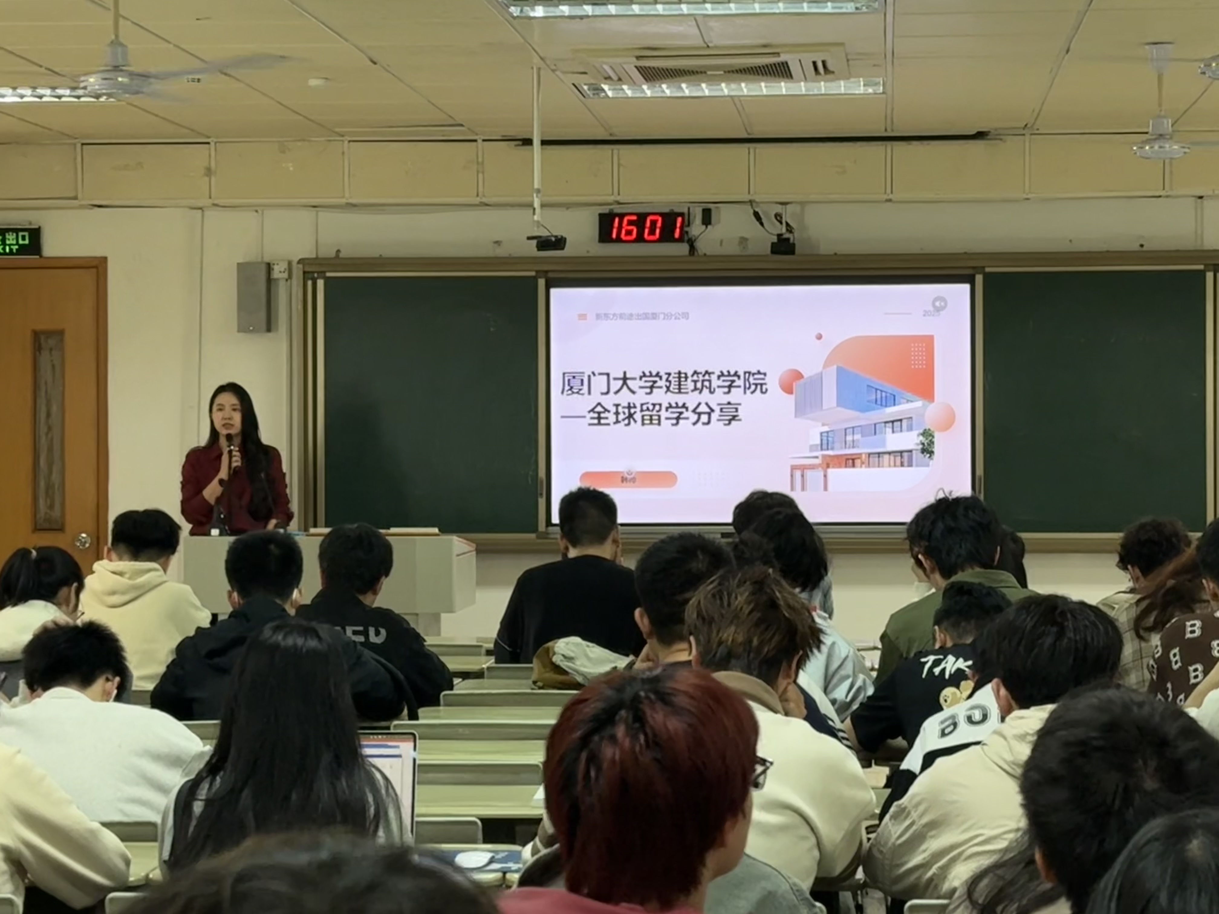 3 月 2 日下午,建筑与土木工程学院在嘉庚五 301 教室举办了一场以 “海外留学规划” 为主题的讲座。此次讲座学院邀请了来自新东方前途出国厦门分公司的主讲教师韩帅,为我院学子提供了专业、全面的留学指导。