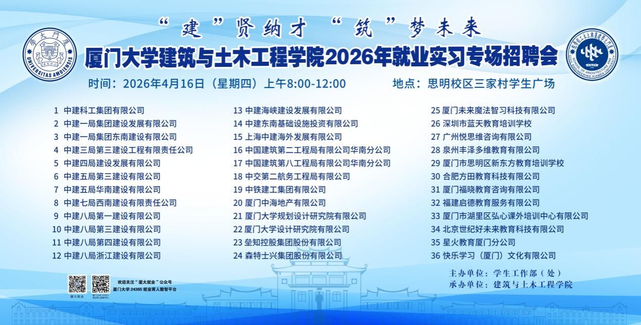 中建科工、中铁建工、厦门中海地产等30+知名企业现场招聘。