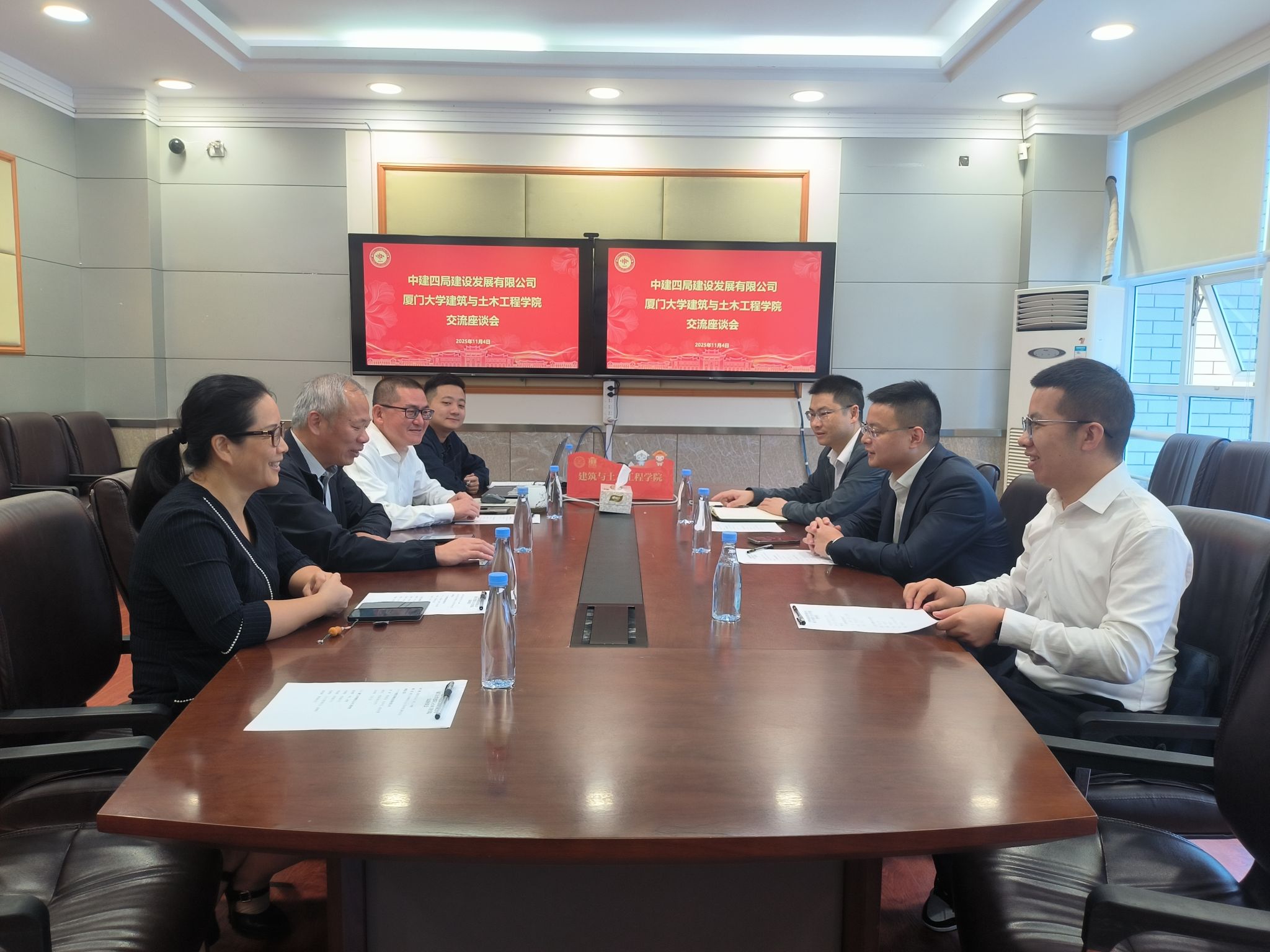 为推动产学研协同创新,拓宽学生就业渠道,寻求校企合作共赢、共谋发展的良好局面,11月4日上午,中建四局建设发展有限公司党委委员、纪委书记、副总经理彭维,党委巡察办负责人林道兴以及纪检部部长助理马寿增一行来访我院,开展校企合作交流座谈会。座谈会在曾呈奎楼208会议室举行,我院院长张建霖教授,党委副书记刘建敏、邹海燕,土木工程系副主任张建国副教授,团委副书记陈韬澜出席会议。